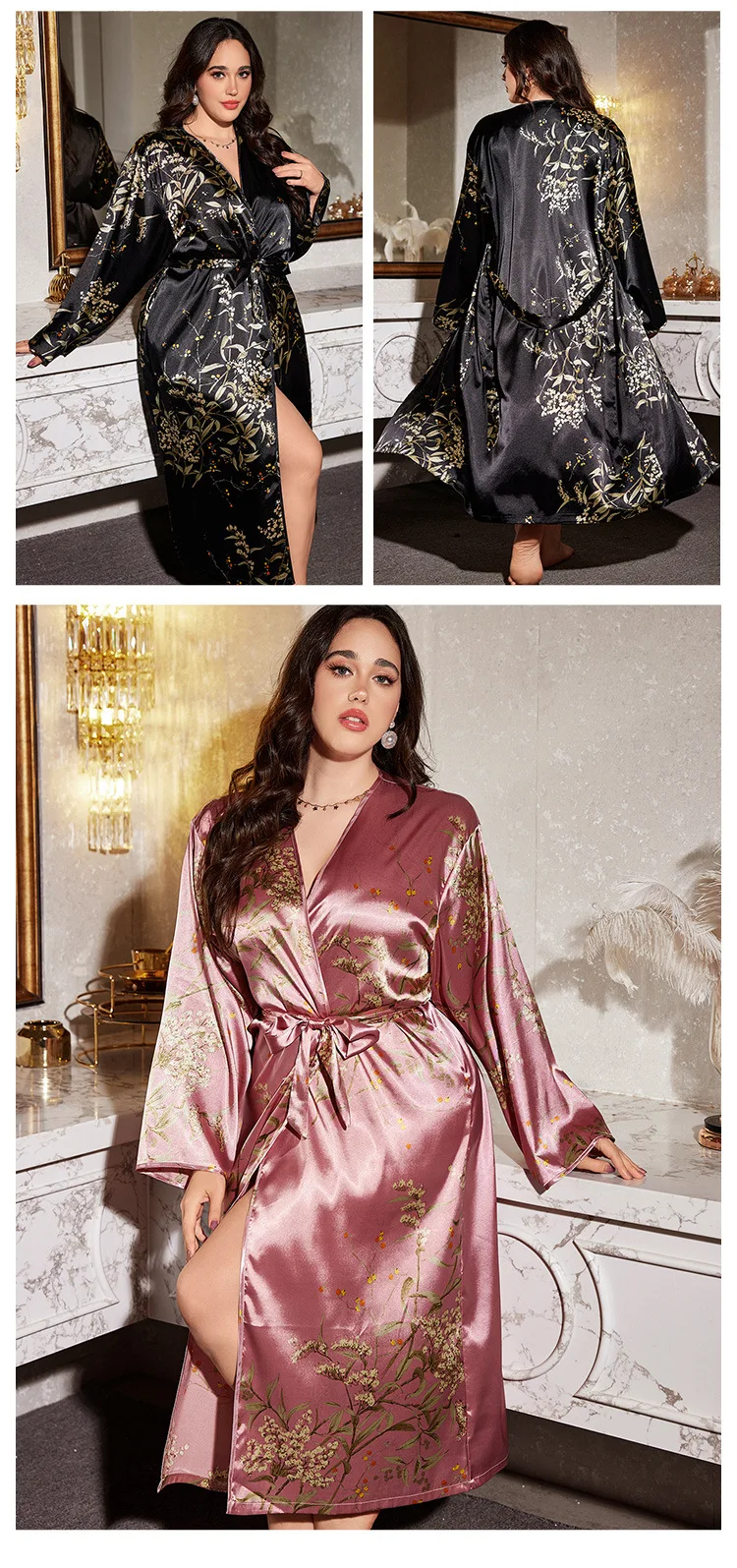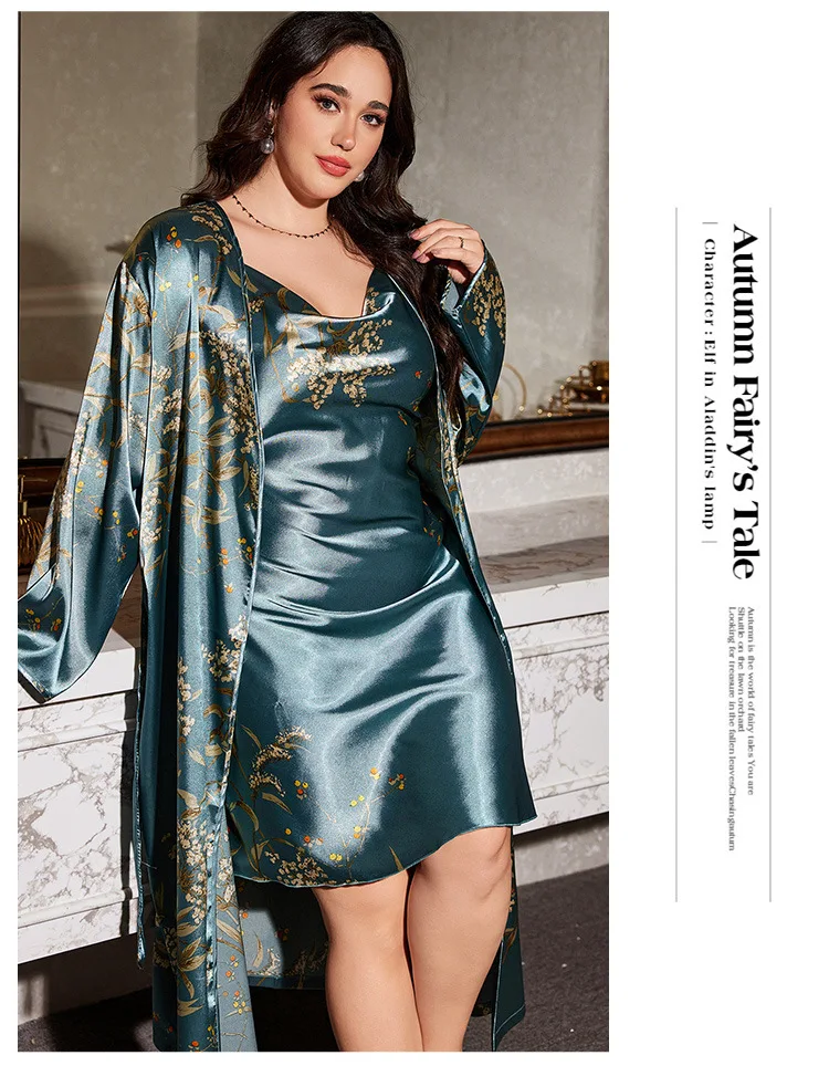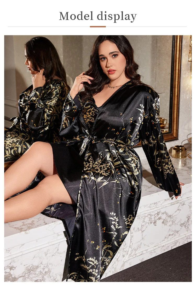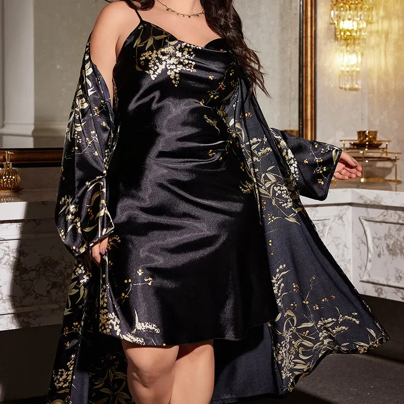Cet ensemble de chemise de nuit et de peignoir kimono disponible jusqu’en taille 5XL offre à chaque femme l’opportunité de se sentir confiante et élégante, quelles que soient ses formes. Chaque pièce est pensée pour épouser harmonieusement votre silhouette tout en garantissant une aisance totale.