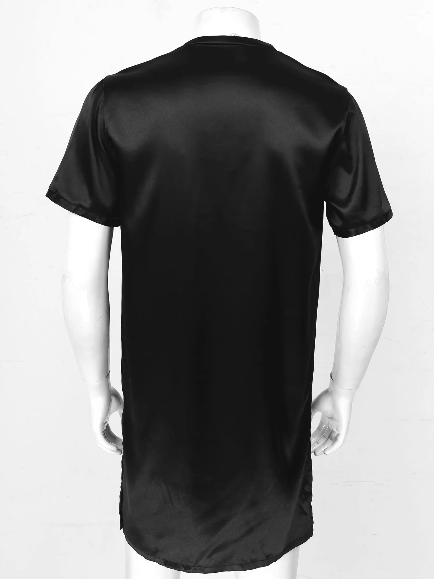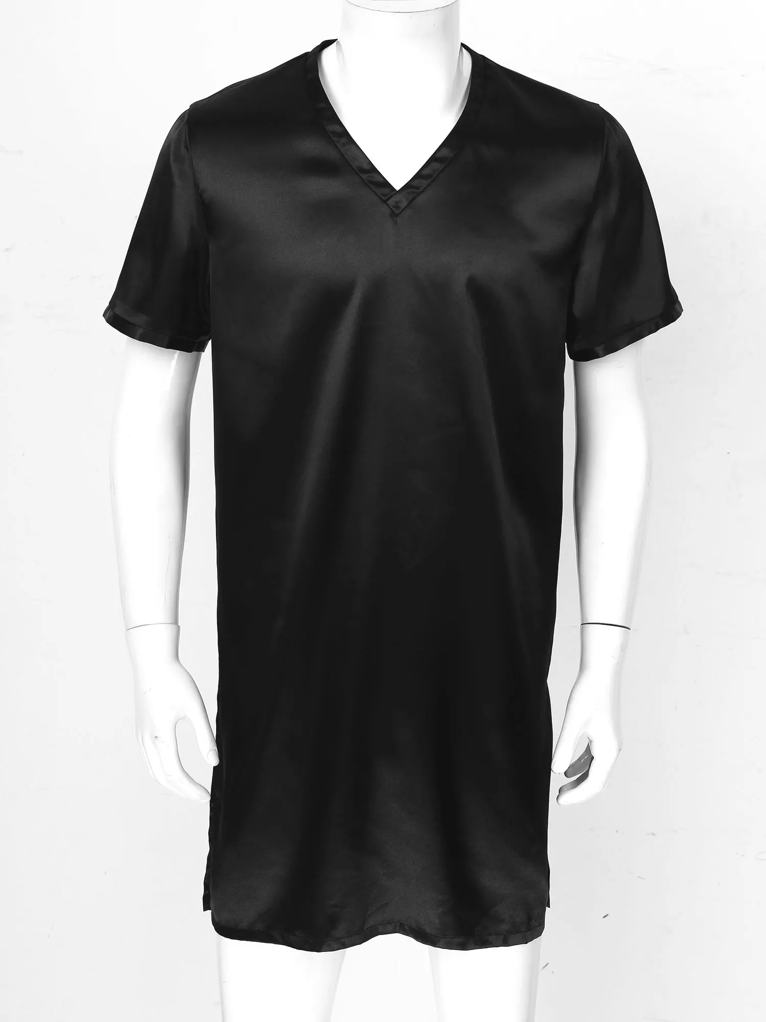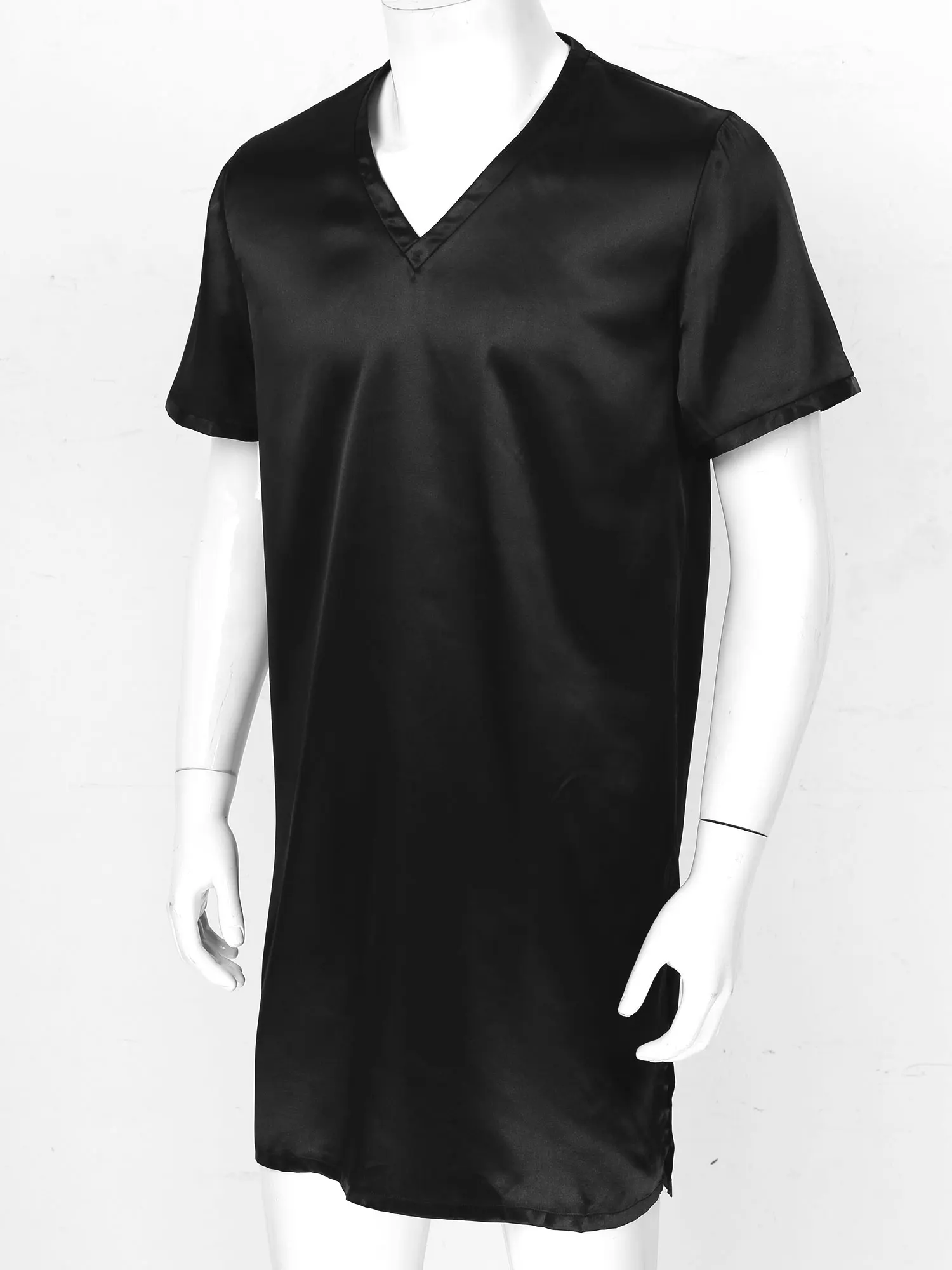 Chemise de Nuit en Satin pour Homme, Kaftan Long et observateur, Confortable, Grand et Grand, Col en V, à Manches sulf, Pyjama : Élégance et Confort