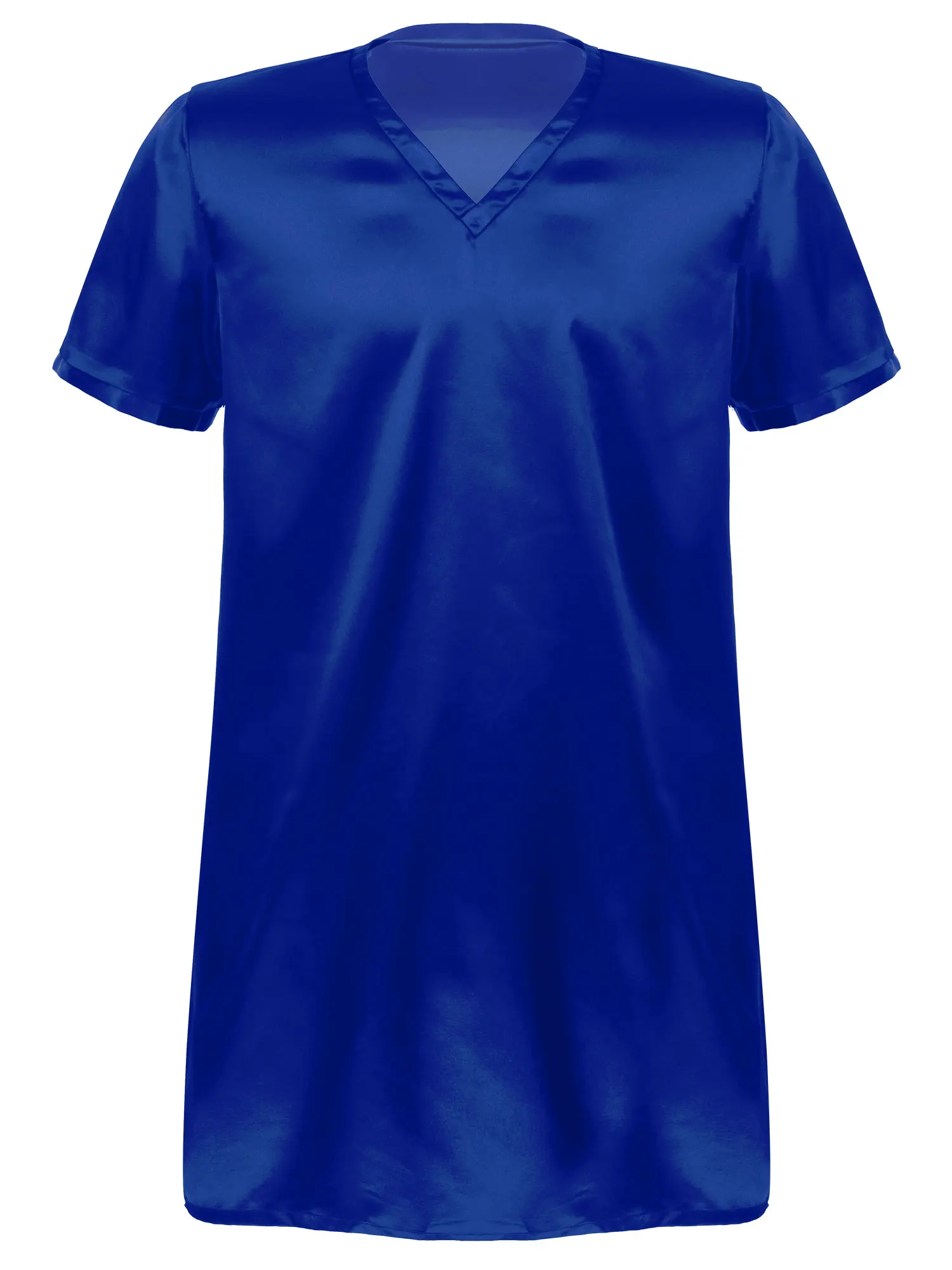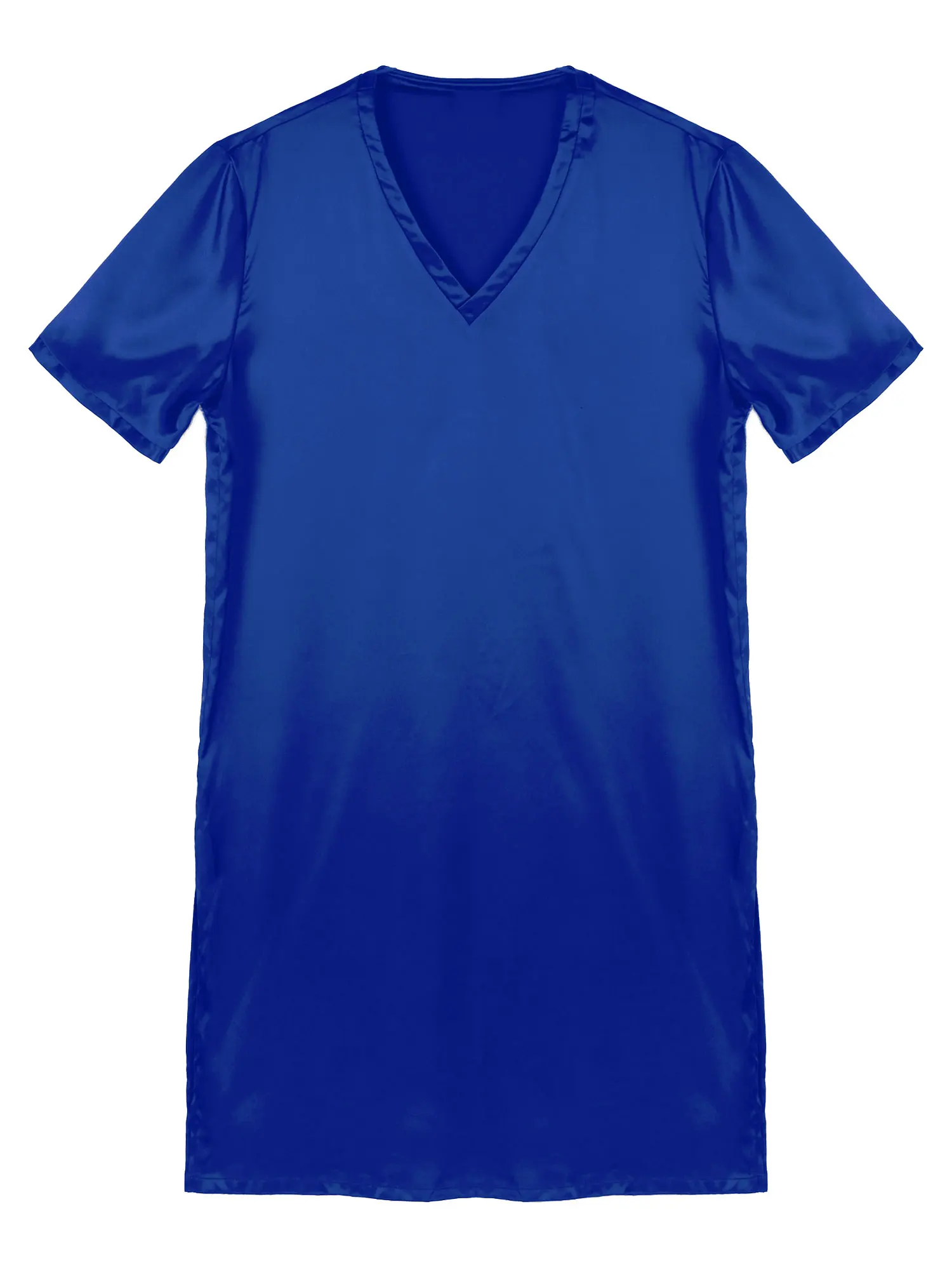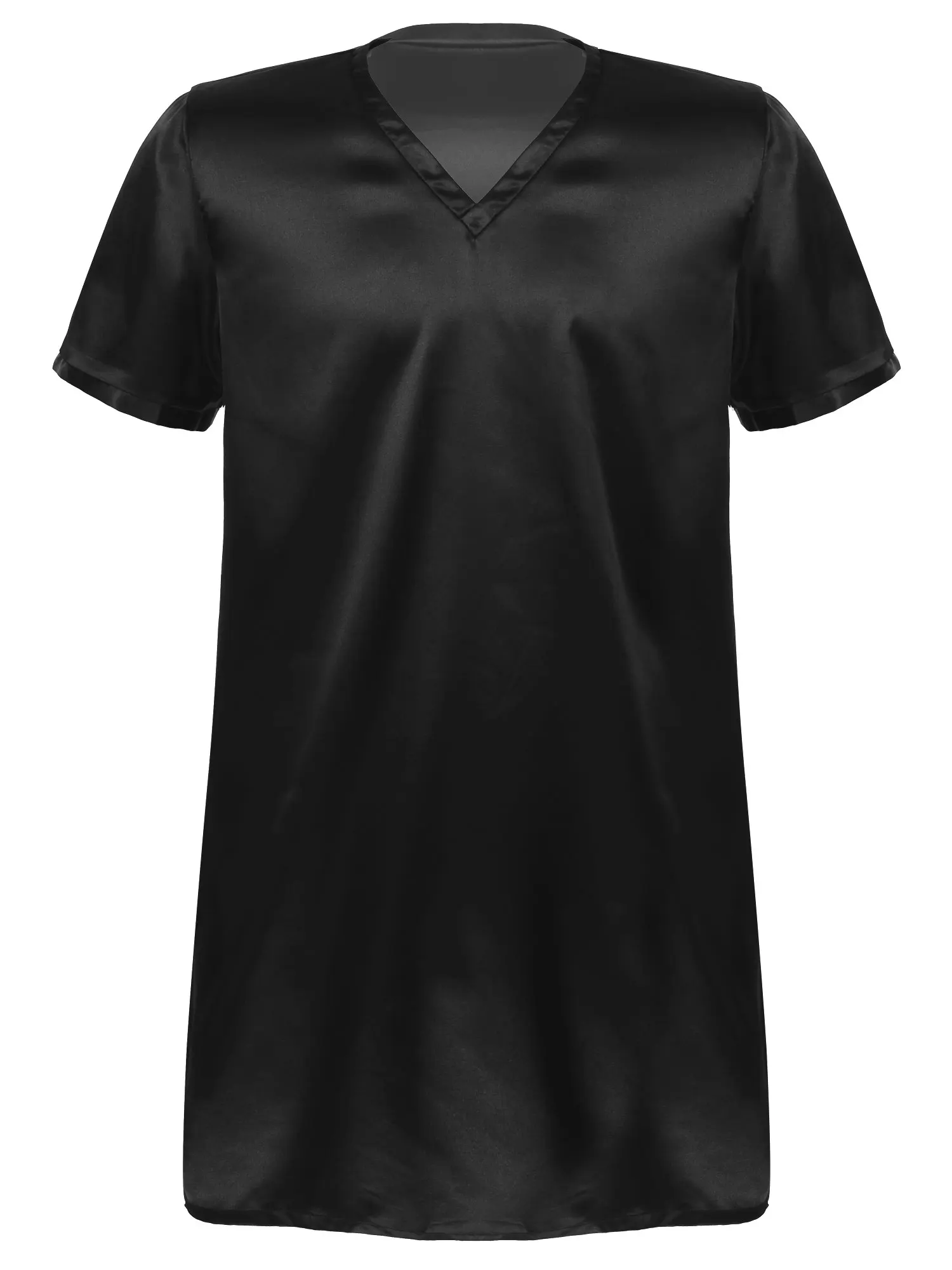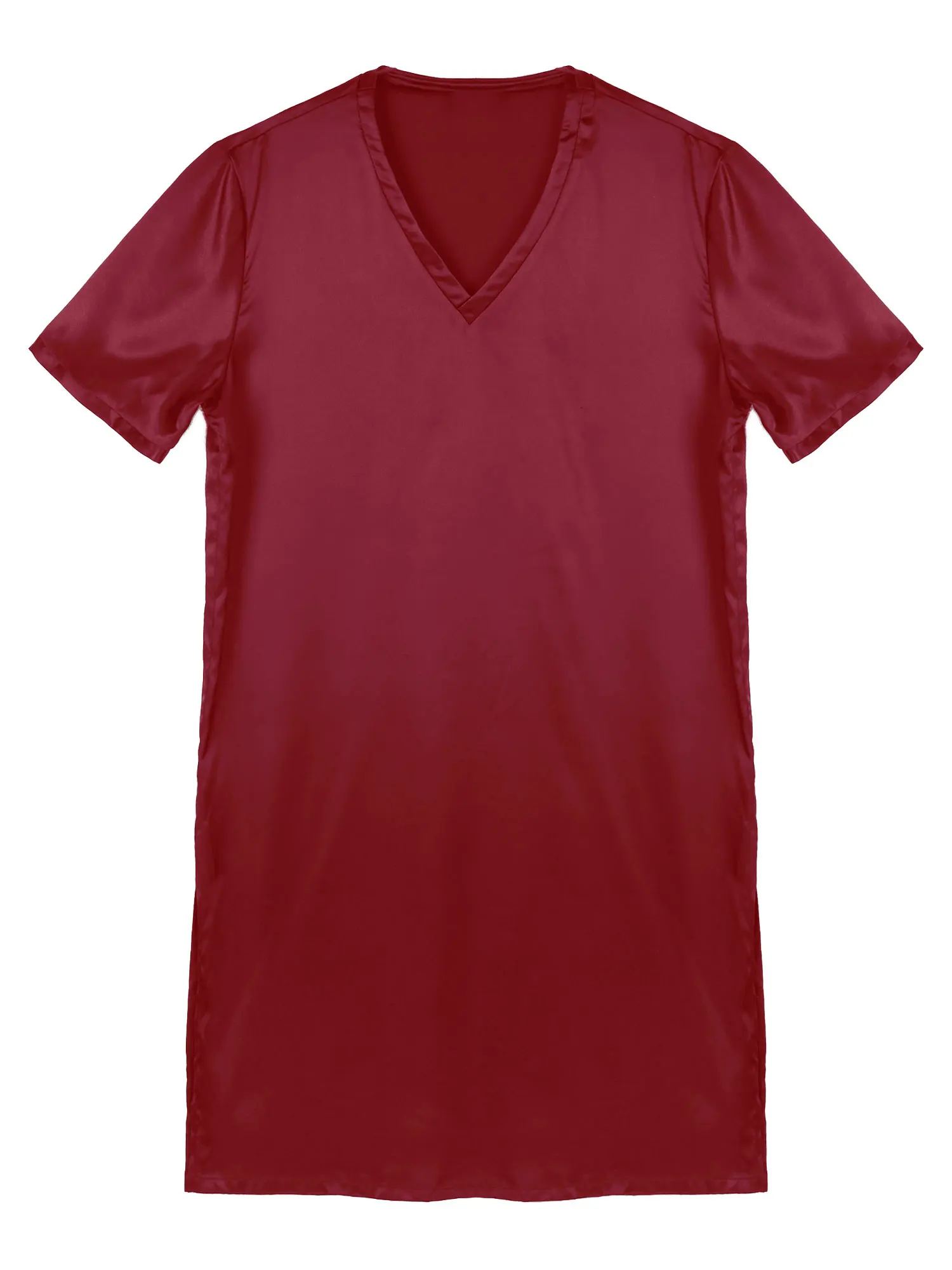 Chemise de Nuit en Satin pour Homme, Kaftan Long et observateur, Confortable, Grand et Grand, Col en V, à Manches sulf, Pyjama : Élégance et Confort