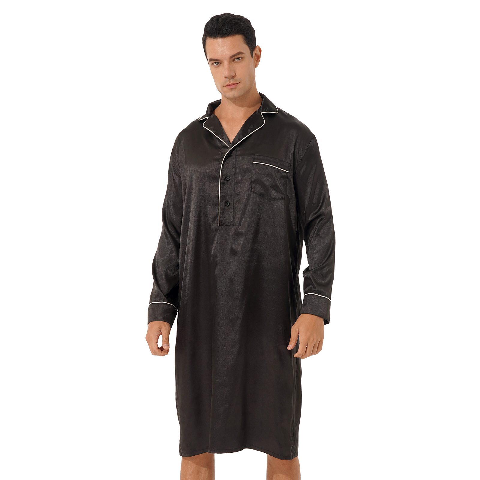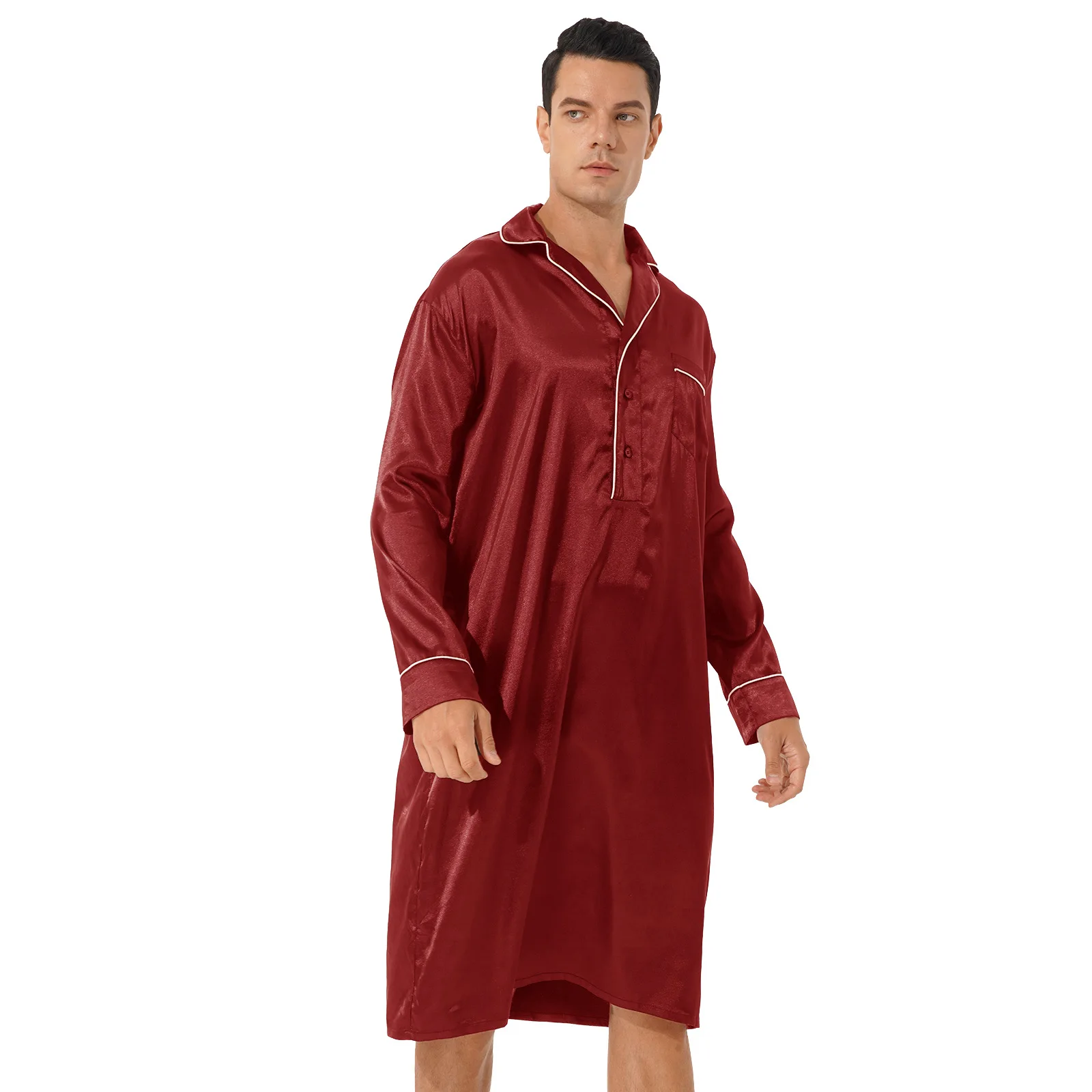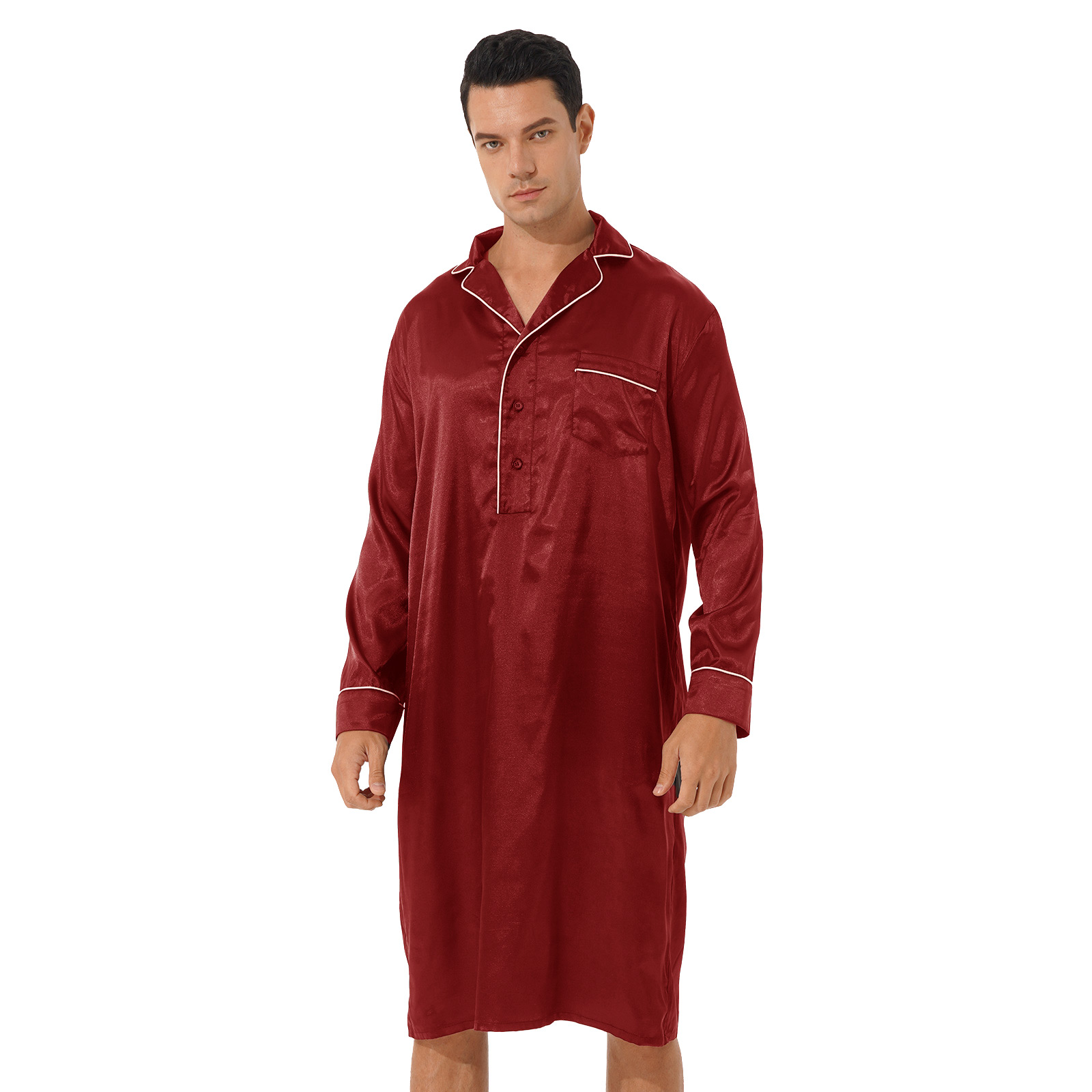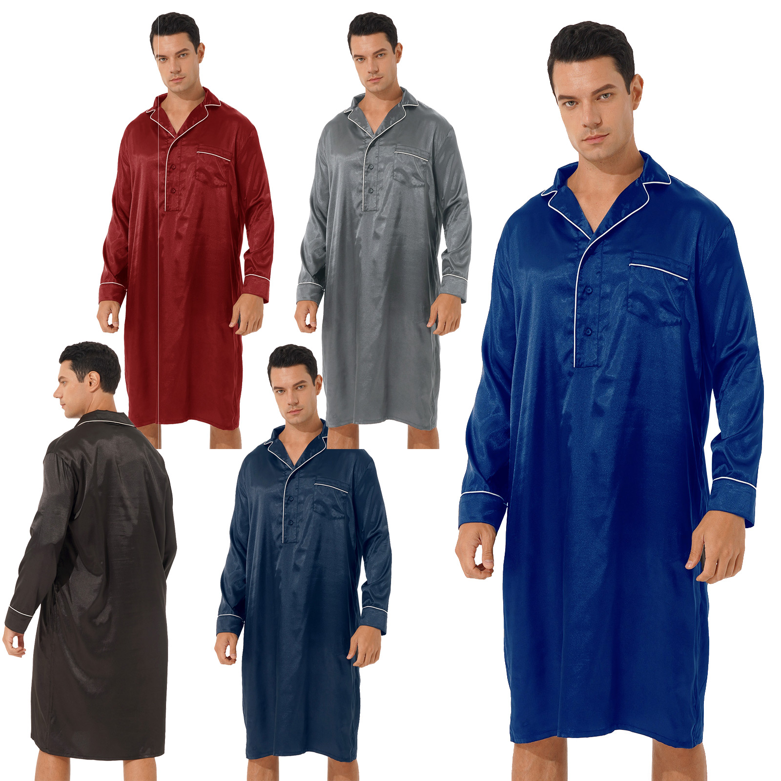 Chemise de Nuit en Satin pour Homme, Kaftan Long et observateur, Confortable, Grand et Grand, Col en V, à Manches sulf, Pyjama : Cadeau Idéal
