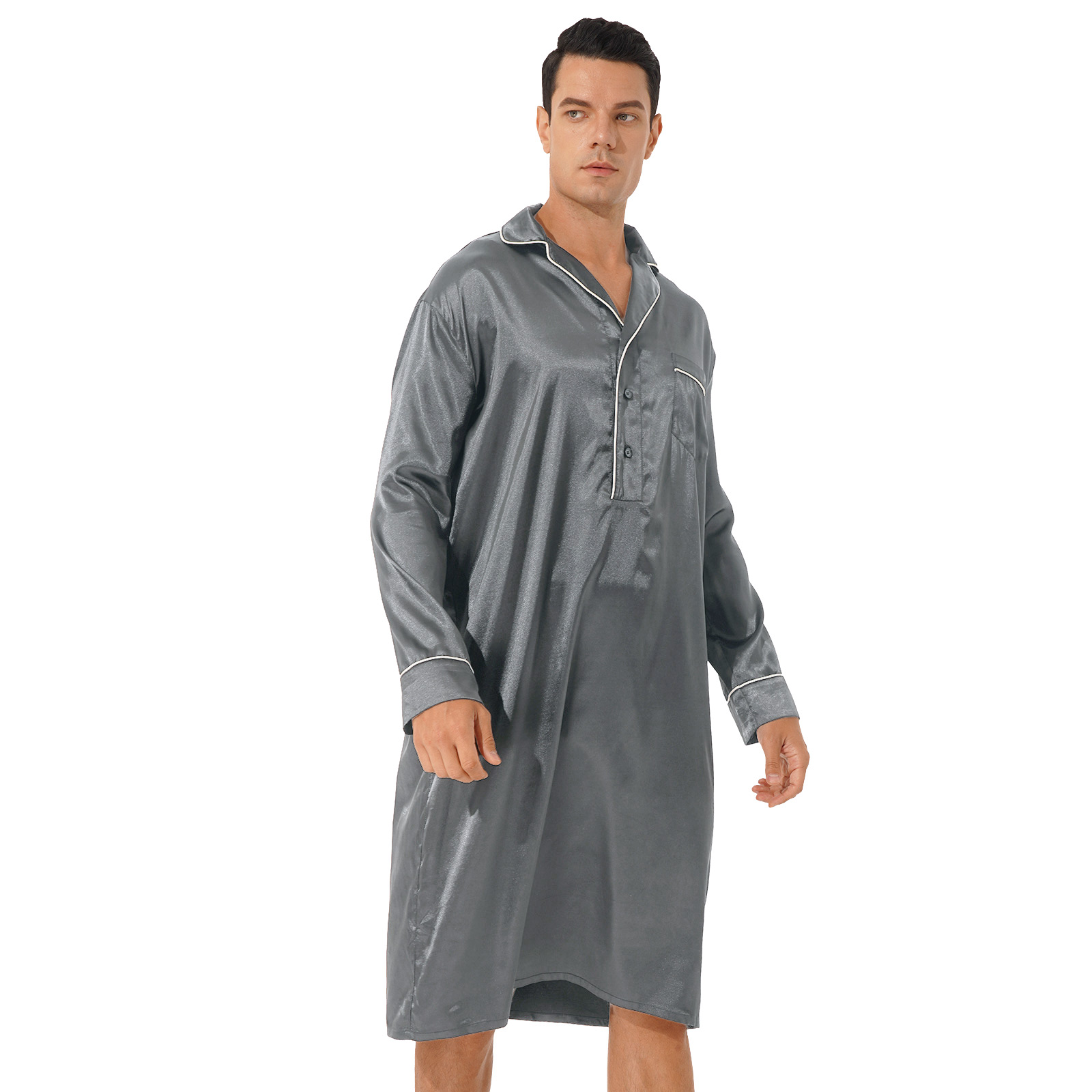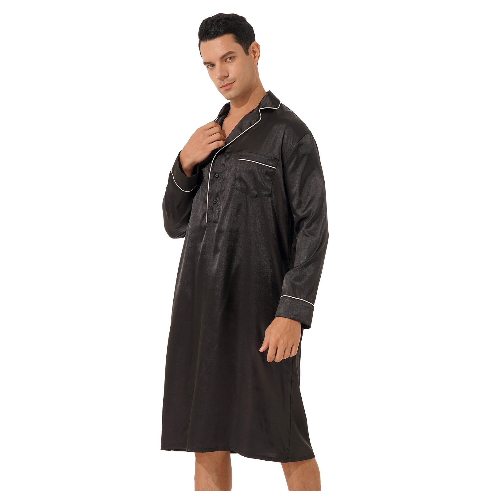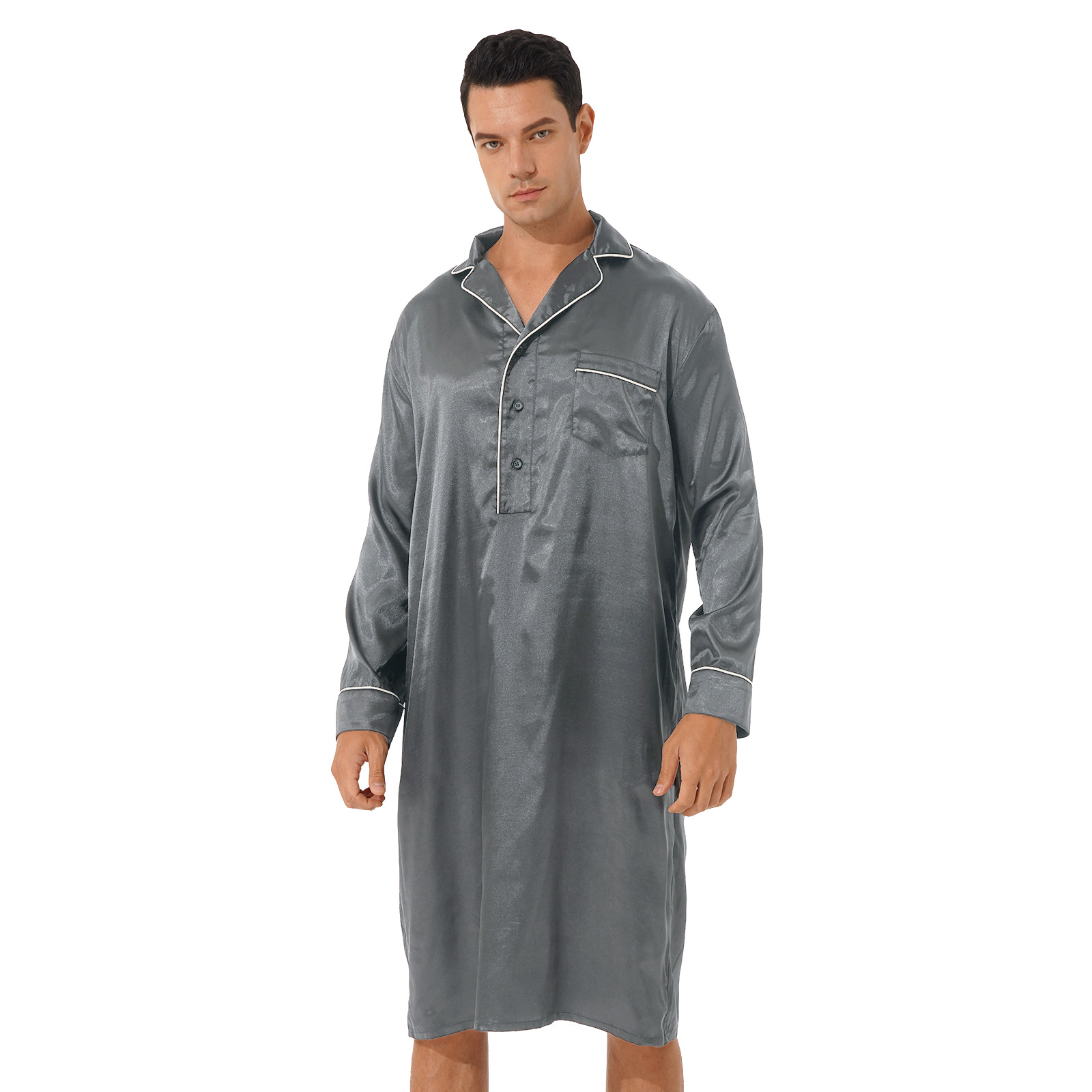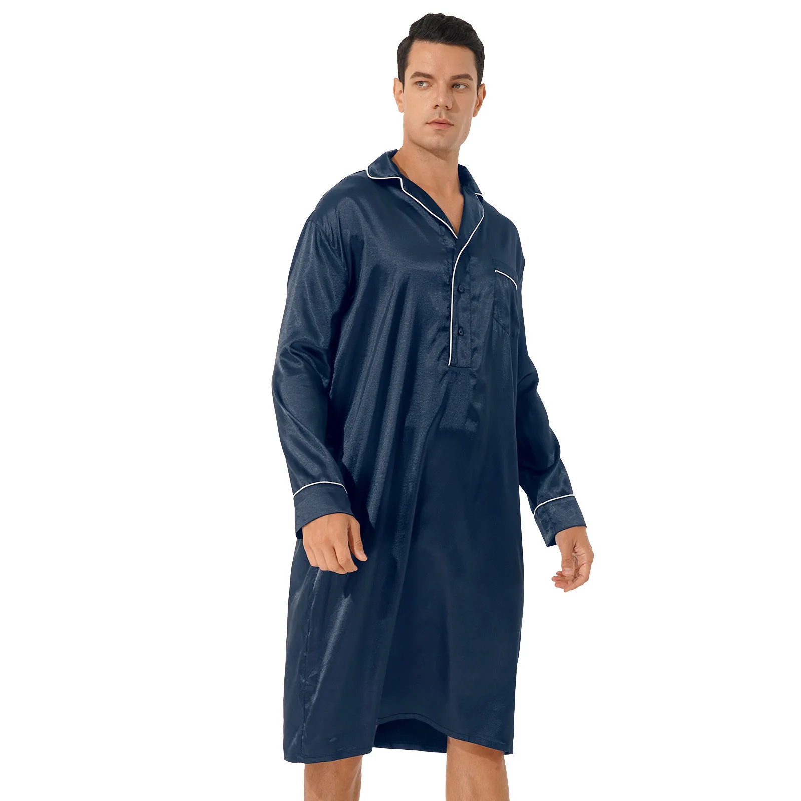 Chemise de Nuit en Satin pour Homme, Kaftan Long et observateur, Confortable, Grand et Grand, Col en V, à Manches sulf, Pyjama : Cadeau Idéal