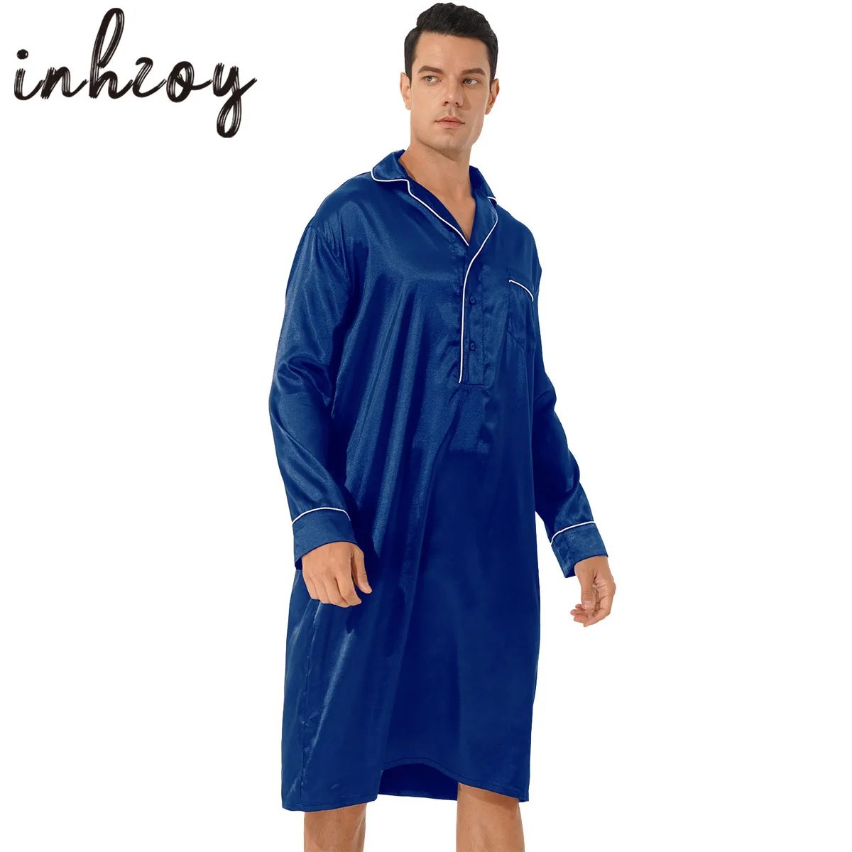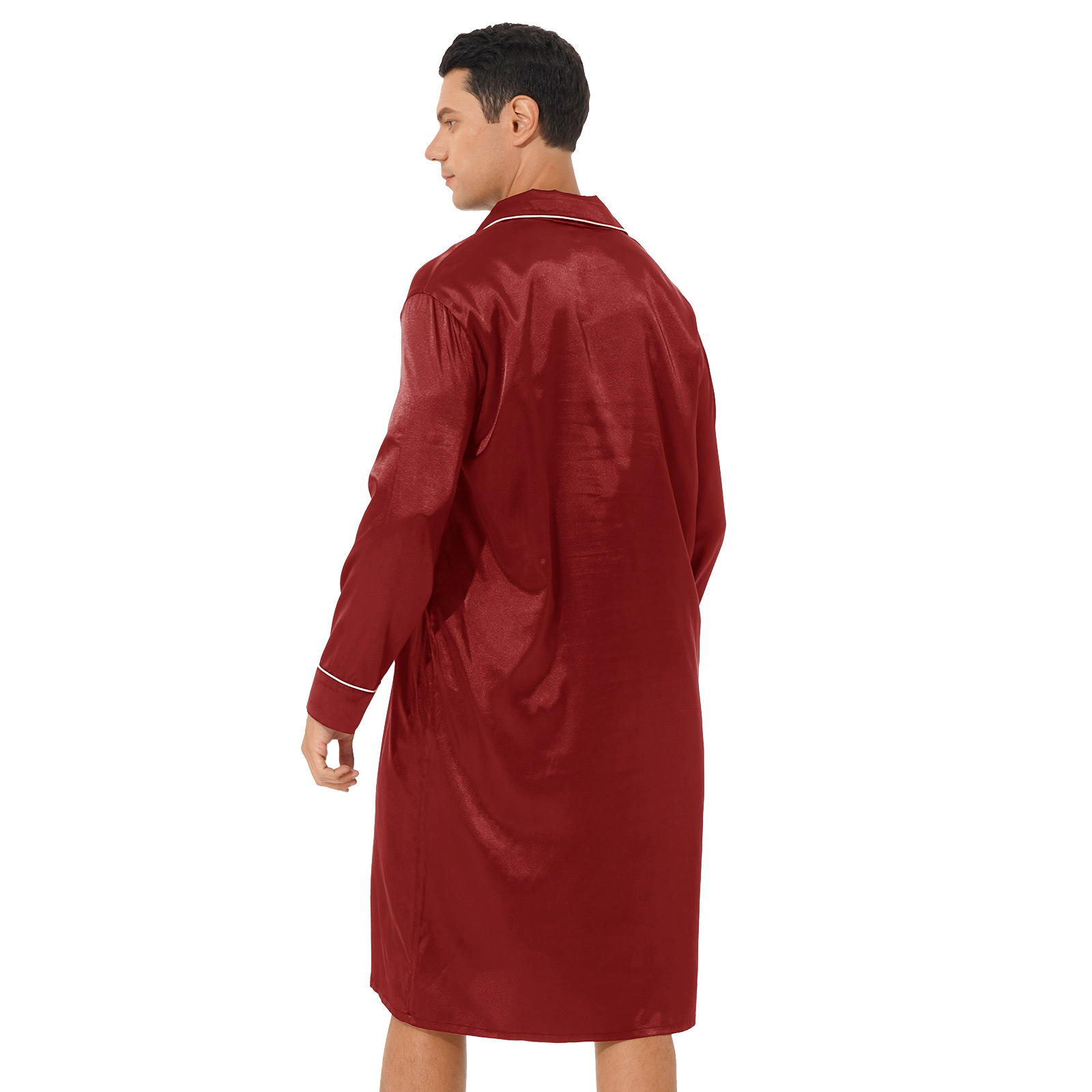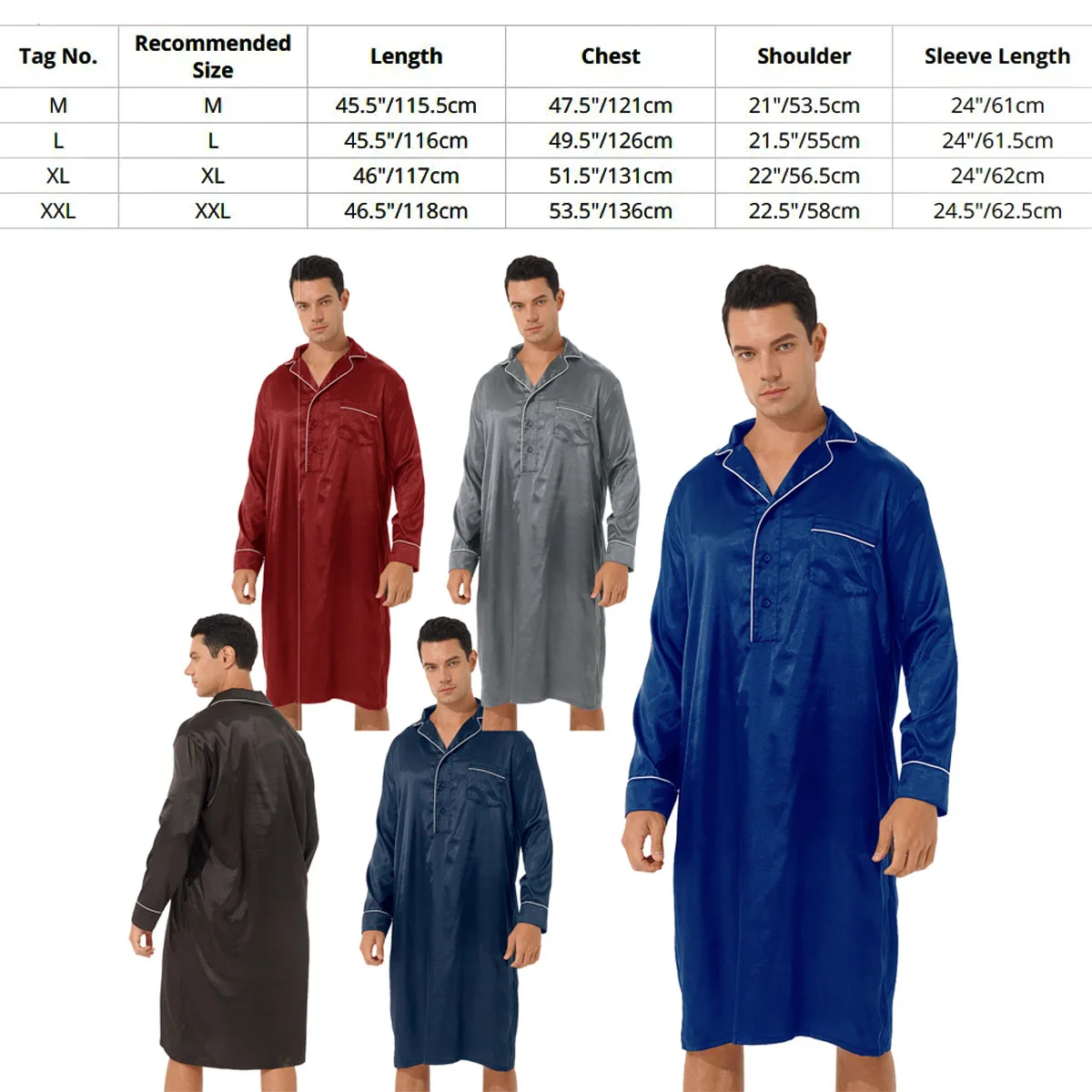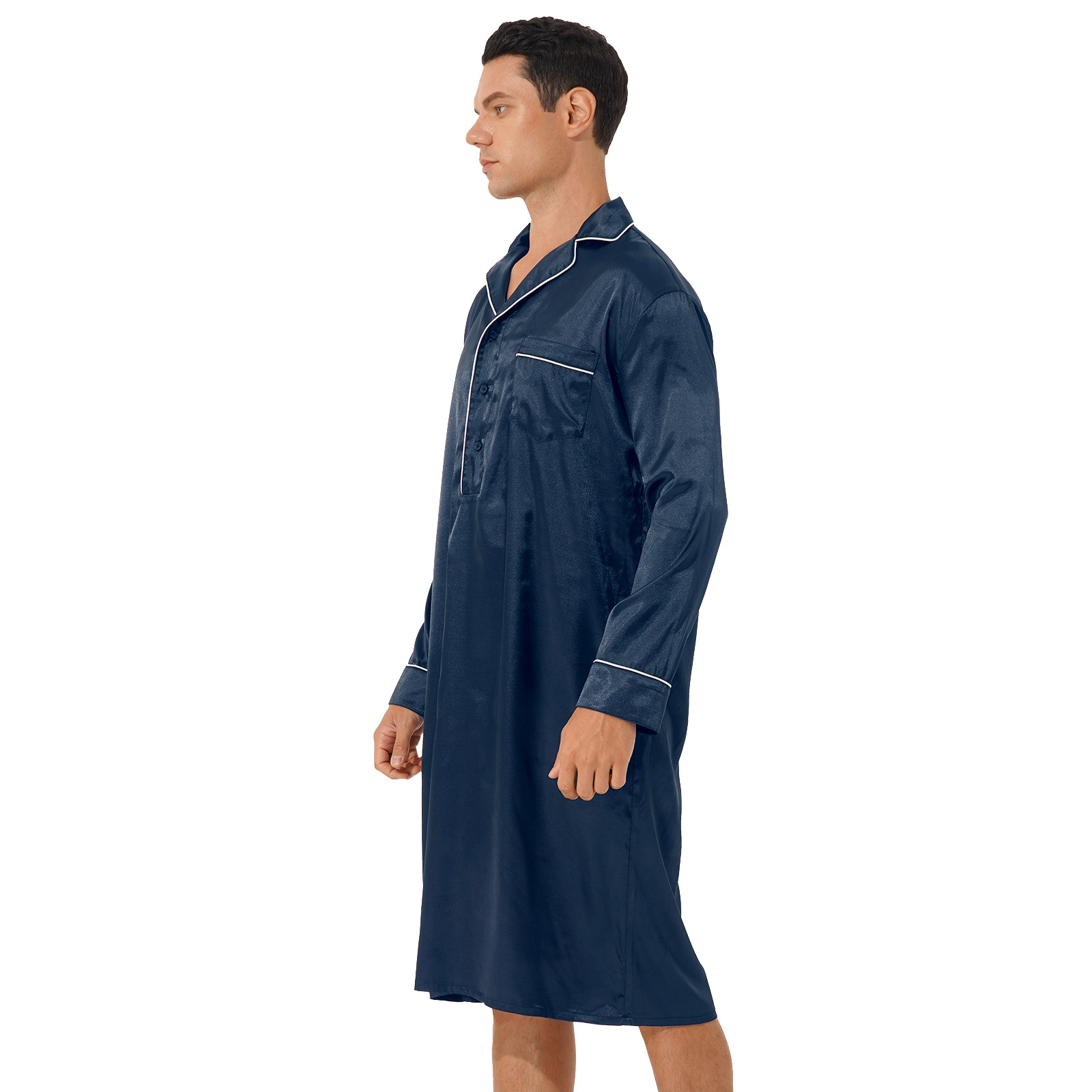 Chemise de Nuit en Satin pour Homme, Kaftan Long et observateur, Confortable, Grand et Grand, Col en V, à Manches sulf, Pyjama : Cadeau Idéal
