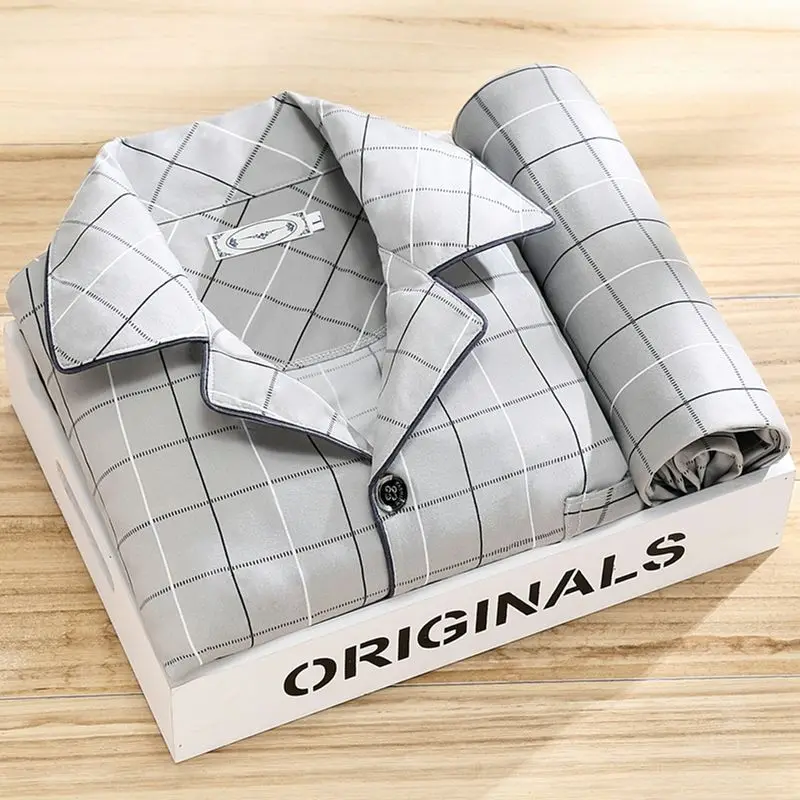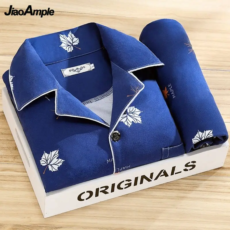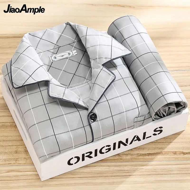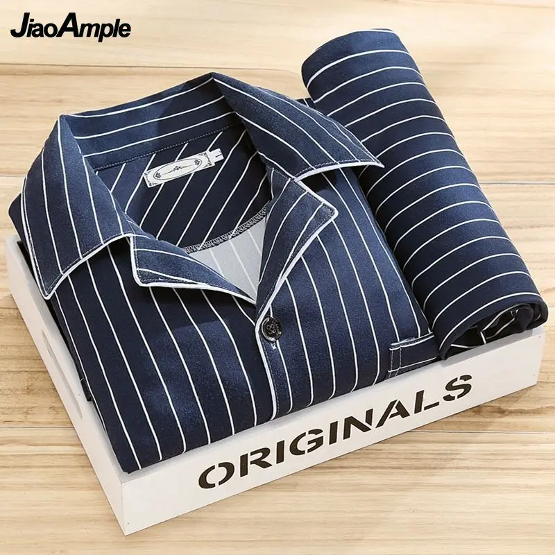 Pyjamas hommes 100% haut de gamme  printemps automne rayé à manches longues pantalon Pijamas deux pièces 2025 nouveau vêtements de nuit amples ensemble de vêtements de maison