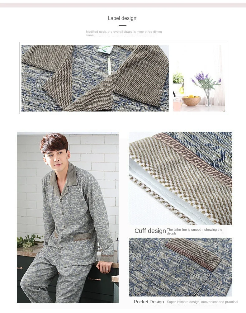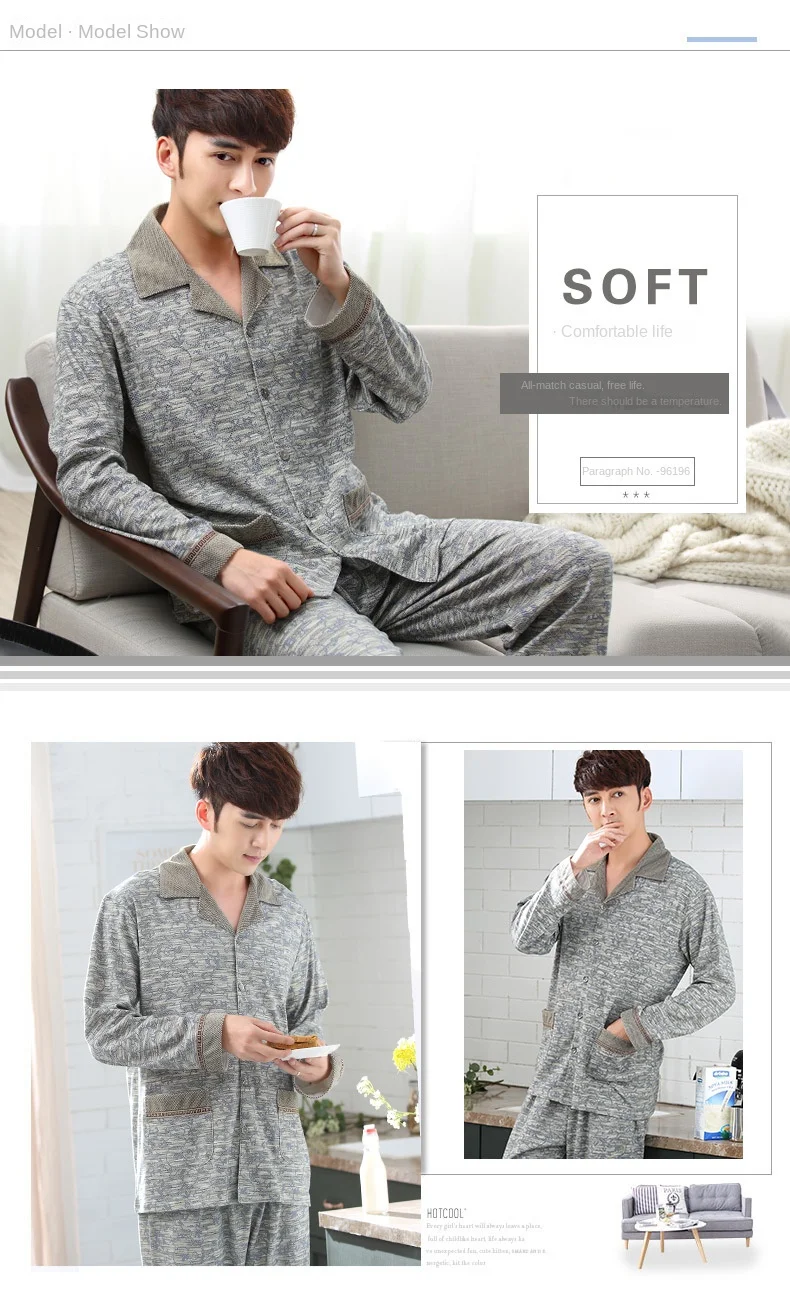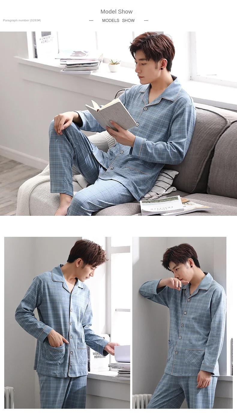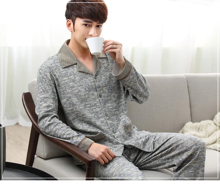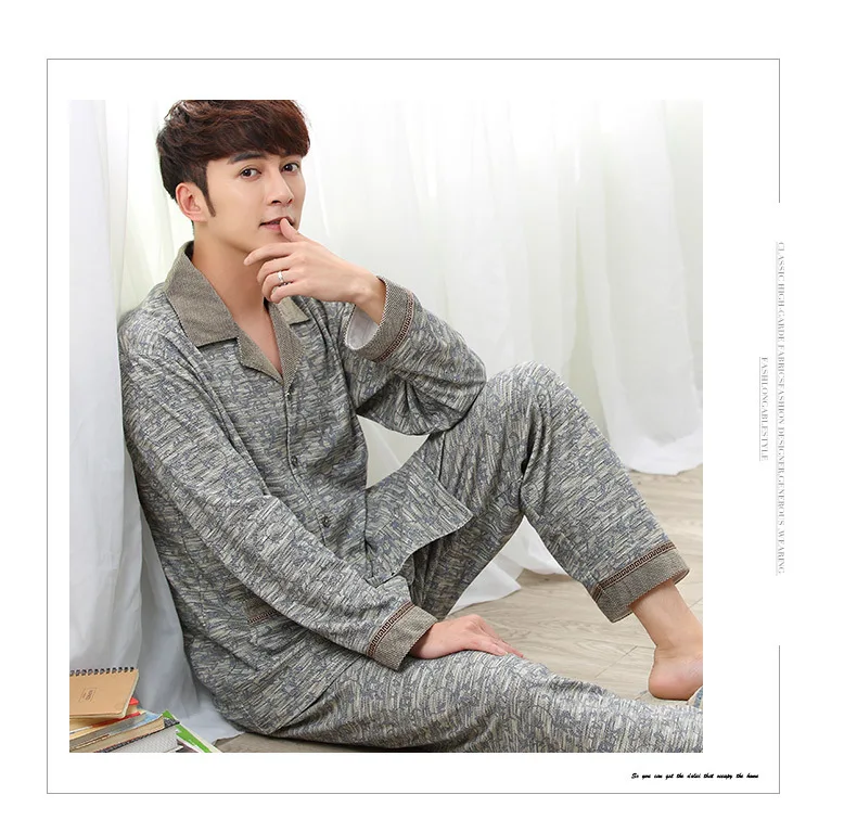 Le style intemporel du Pyjamas hommes printemps et automne hiver 100% coton à manches longues chez vous