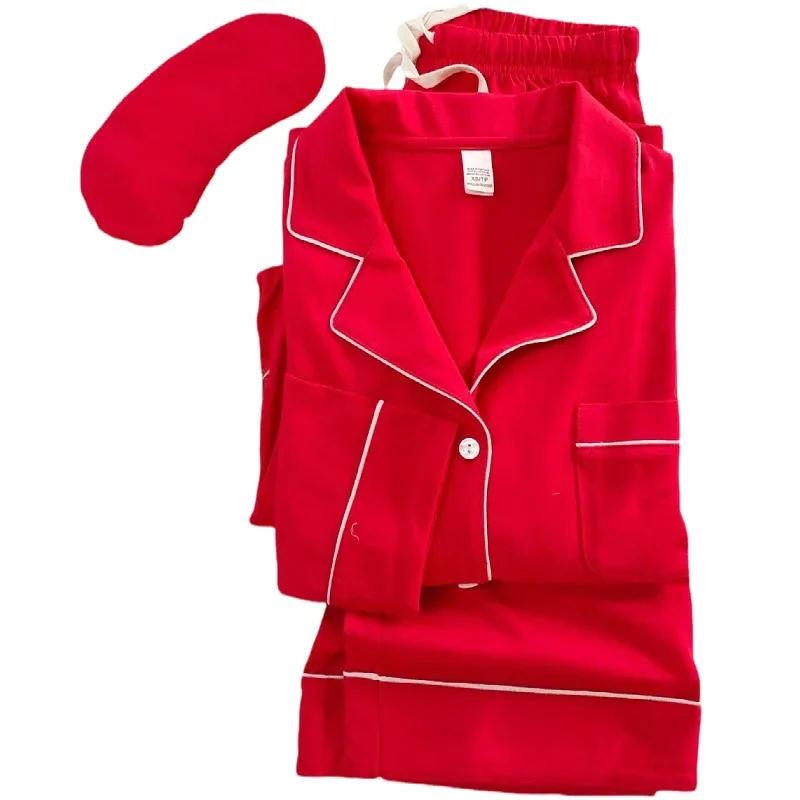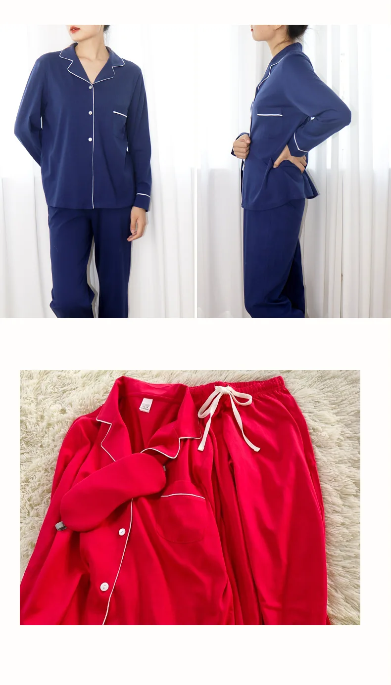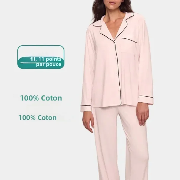 Pyjama vêtements de nuit tricotés en pur coton pour femmes, manches longues, coupe ample, col, vêtements de maison, confortables et respirants, toutes saisons, nouvelle collection